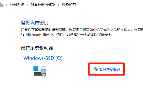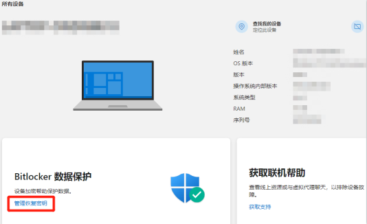 点击Bitlocker 数据保护下面的管理恢复密钥,可直接看到密钥
